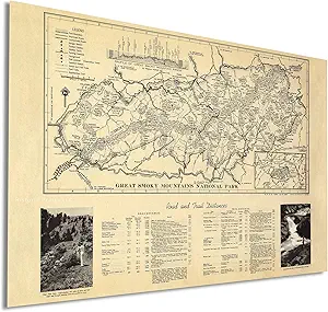Vintage 1940 Great Smoky Mountains Map - 24 x 36 Inch Vintage Map Wall Art - Appalachian Trail Poster - Tennessee Poster - Smoky